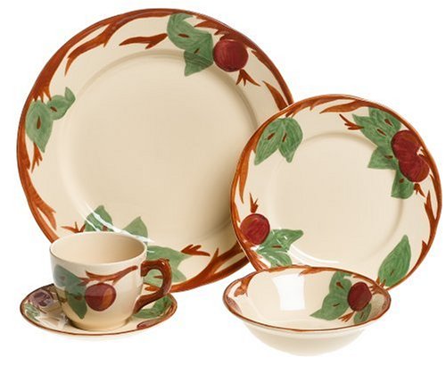 >>>> Only Visit store to see price Best Buy On the first day of January 1940, Apple was introducedas Gladding McBean's first pattern to have hand painted decoration on an embossed body. The design of the Apple collection has a red, green and brown apple decoration on a sand colored base. The apple design is in a hand-painted style of ripe red apples and green leaves with brown accents that parovide a warm sense of Fall year round. The 20 piece dinnerware set consists of four 5 piece place settings..