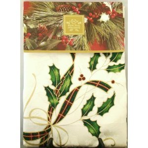 Traditional holiday motifs of holly and ribbon adorn this Lenox durable cotton-blend tablecloth. A festive addition to your holiday table....