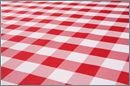 - Red & White oilcloth tablecloth designed for this table 36 x 36 inches with straps